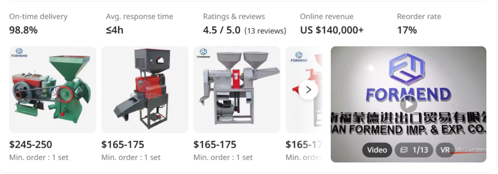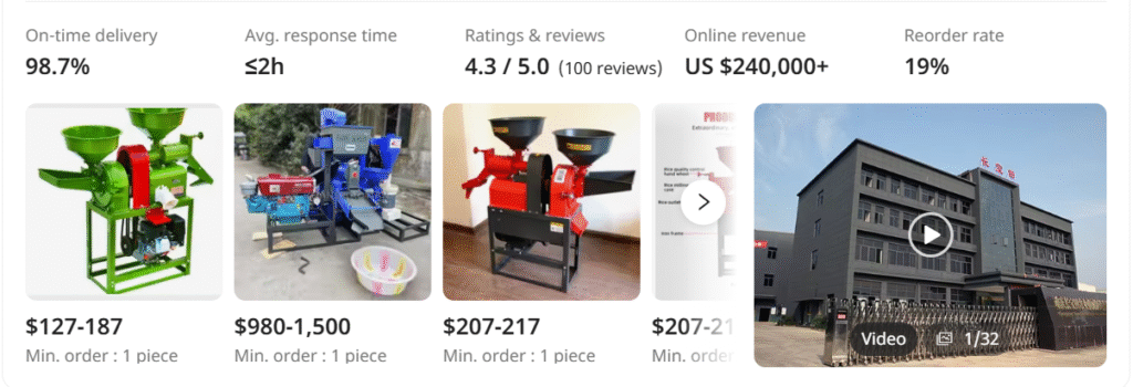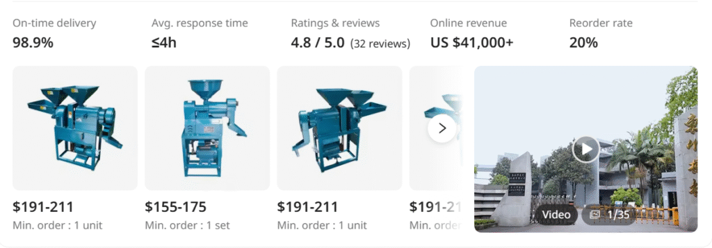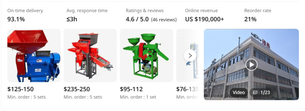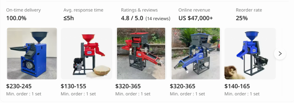 Lựa chọn nhà cung cấp uy tín là yếu tố then chốt để đảm bảo chất lượng sản phẩm. Dưới đây là một số nhà cung cấp máy xát gạo mini đáng tin cậy trên Alibaba mà bạn có thể tham khảo: