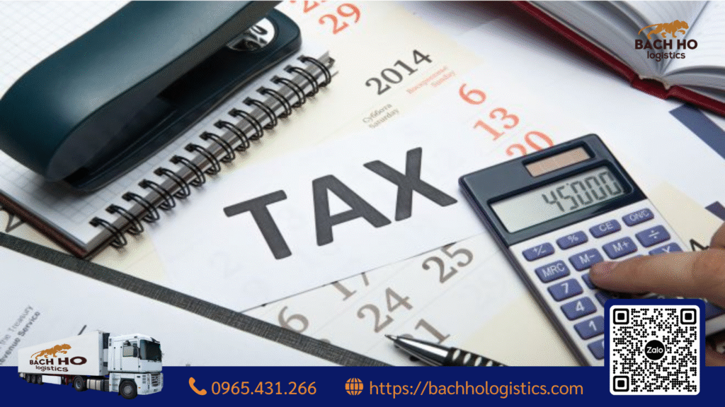 • Thuế Giá trị gia tăng (VAT): [(Trị giá tính thuế) + (Thuế nhập khẩu)] x (Thuế suất VAT %). Thường là 5-10% tùy mặt hàng.