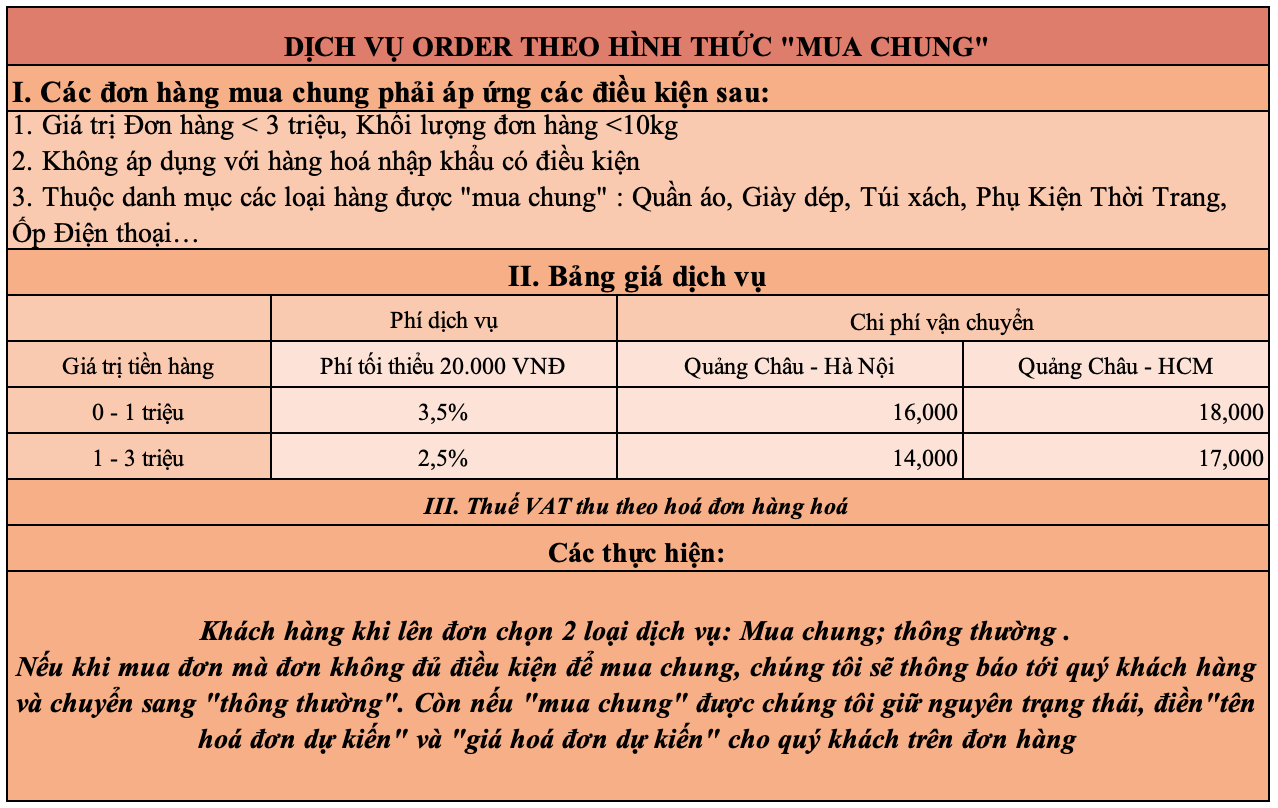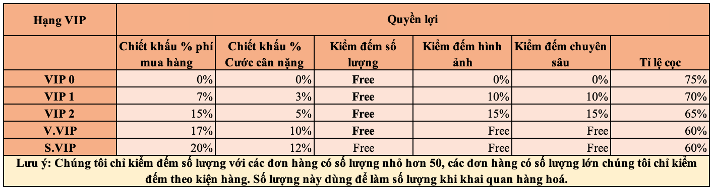 Phí kiểm đếm: Dịch vụ kiểm tra sản phẩm tại kho Trung Quốc, nhằm đảm bảo số lượng và chủng loại hàng hóa khớp với đơn đặt hàng của khách.